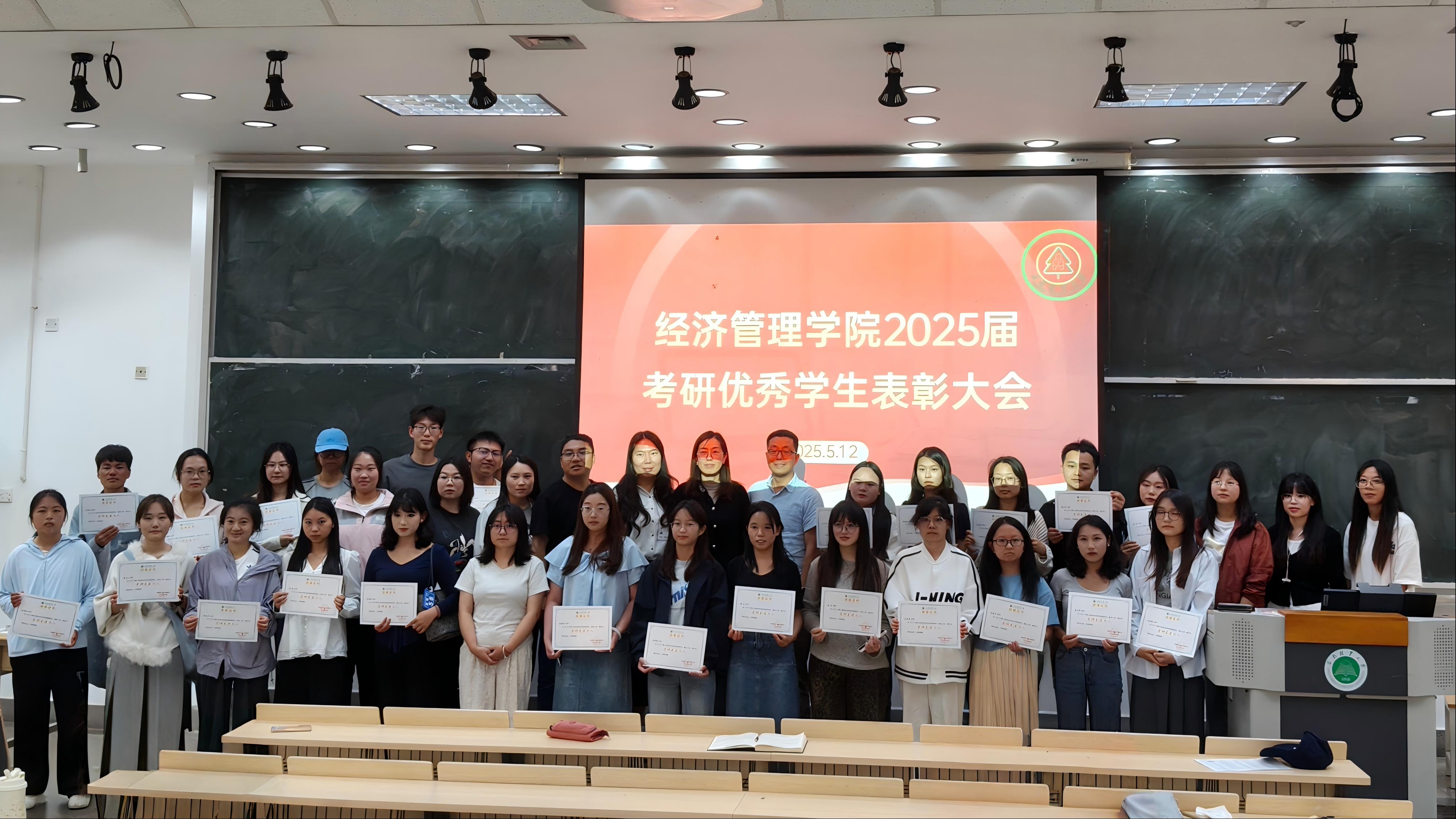 2025年5月12日,经济管理学院举办2025届考研优秀学生表彰大会。学院党委书记韩洁、院长张连刚、党委副书记马泽、副院长李娅、考研特色班全体导师、考研特色班学生及2025届考研录取学生共同参会,表彰先进典型,分享成功经验。
