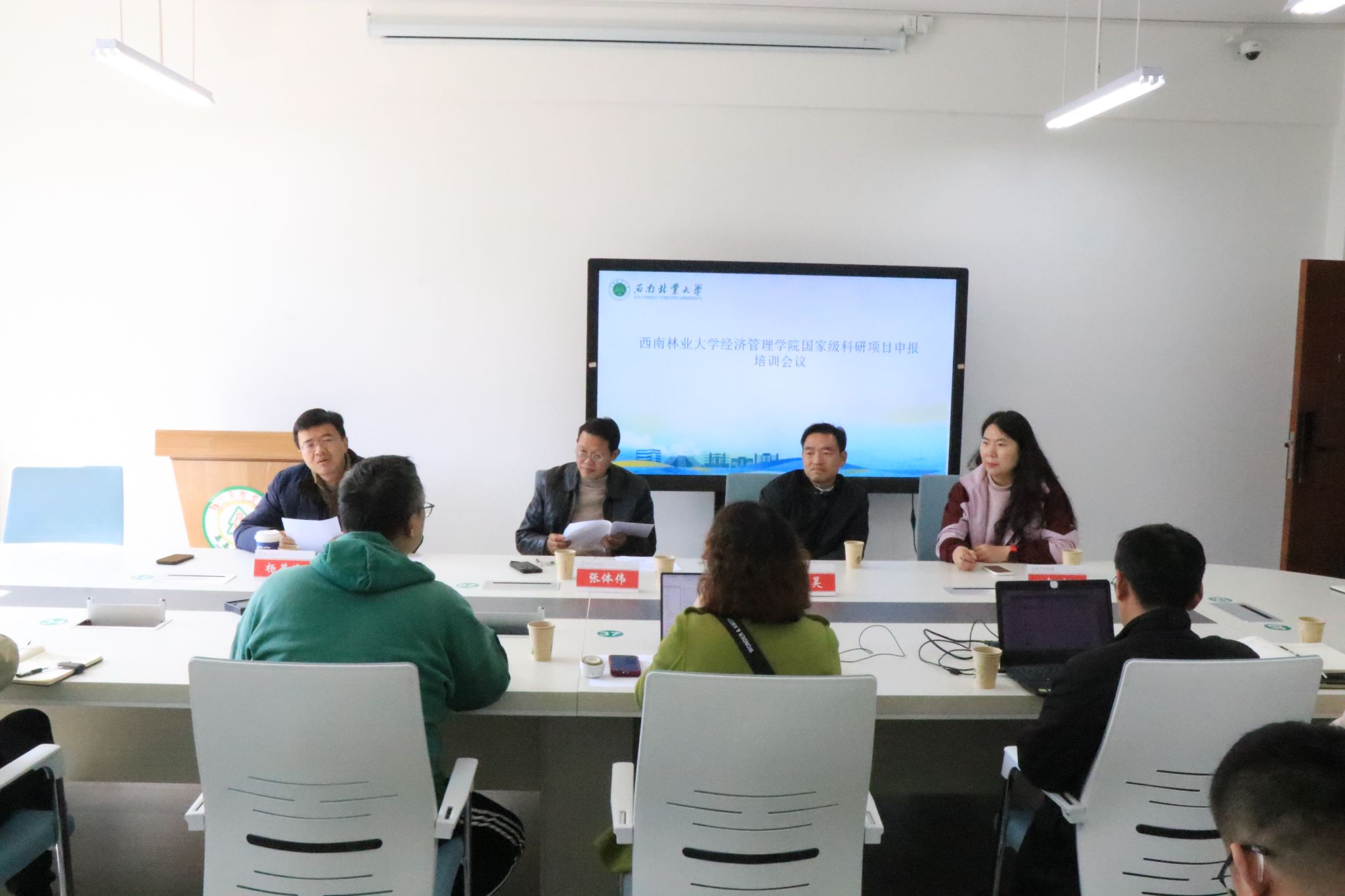 1月8日,经济管理学院举办2025年度国家基金项目申报第四轮选题论证会。此次会议邀请到云南省社科院张体伟研究员和云南财经大学杨荣海教授,为准备申报2025年度国家基金项目的教师们进行一对一指导。经济管理学院副院长李娅教授主持,校社科办赵昊副主任出席会议。