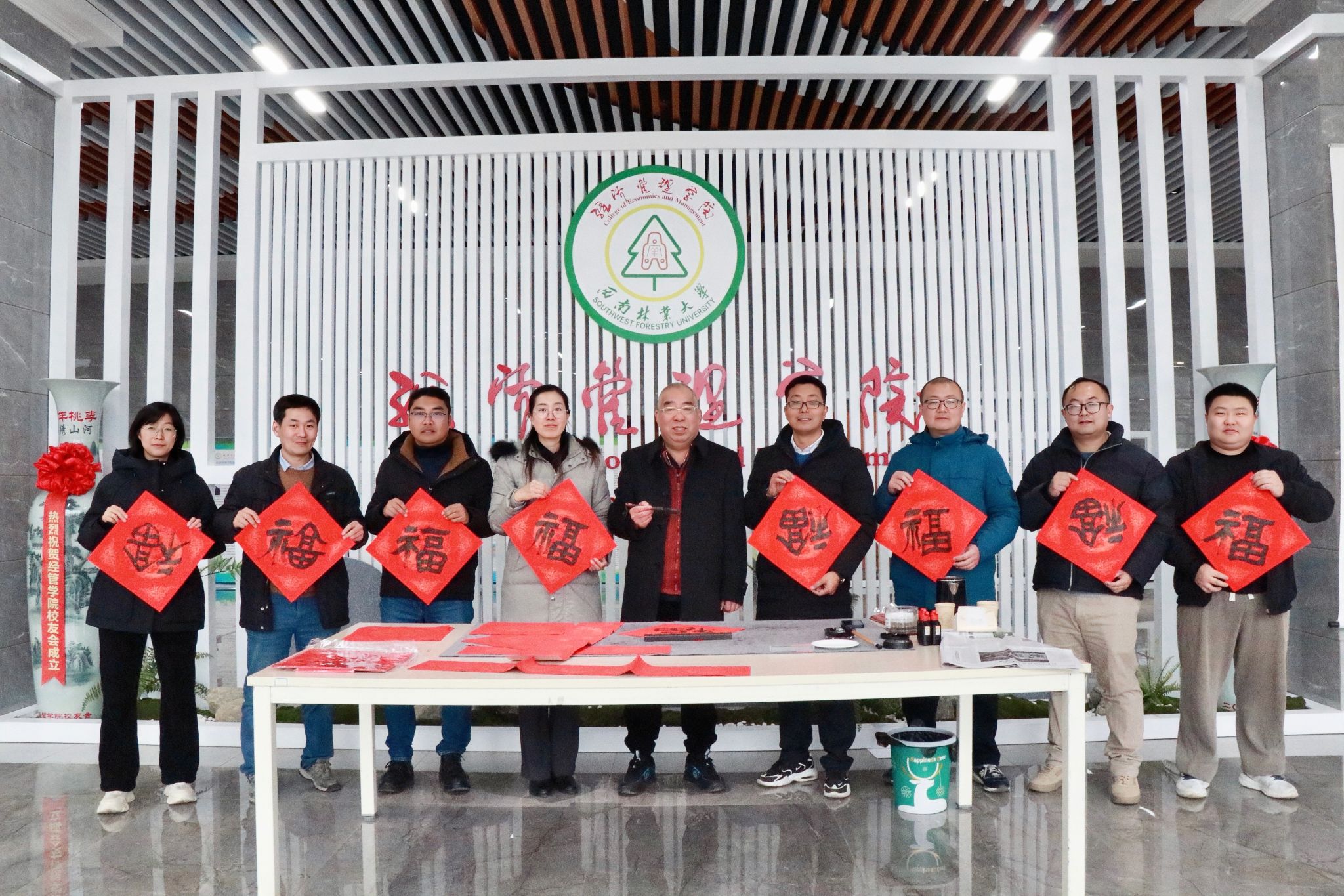 1月10日下午,经济管理学院在经管楼大厅举办“墨香盈经管,福到贺新年”活动,经济管理学院特聘教授陈建成及部分教职工为学院师生送上新春祝福,学院党政领导班子教师和同学出席活动。