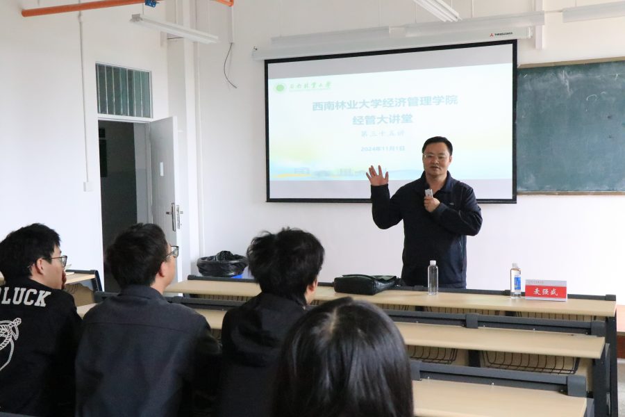 11月1日,玉溪市公共资源交易中心师文燕高级工程师应邀为“经管大讲堂”作题为“政府采购理论与实务”的学术报告。报告会在西南林业大学至真楼515室举行,经济管理学院麦强盛教授主持,100余名师生代表参加。