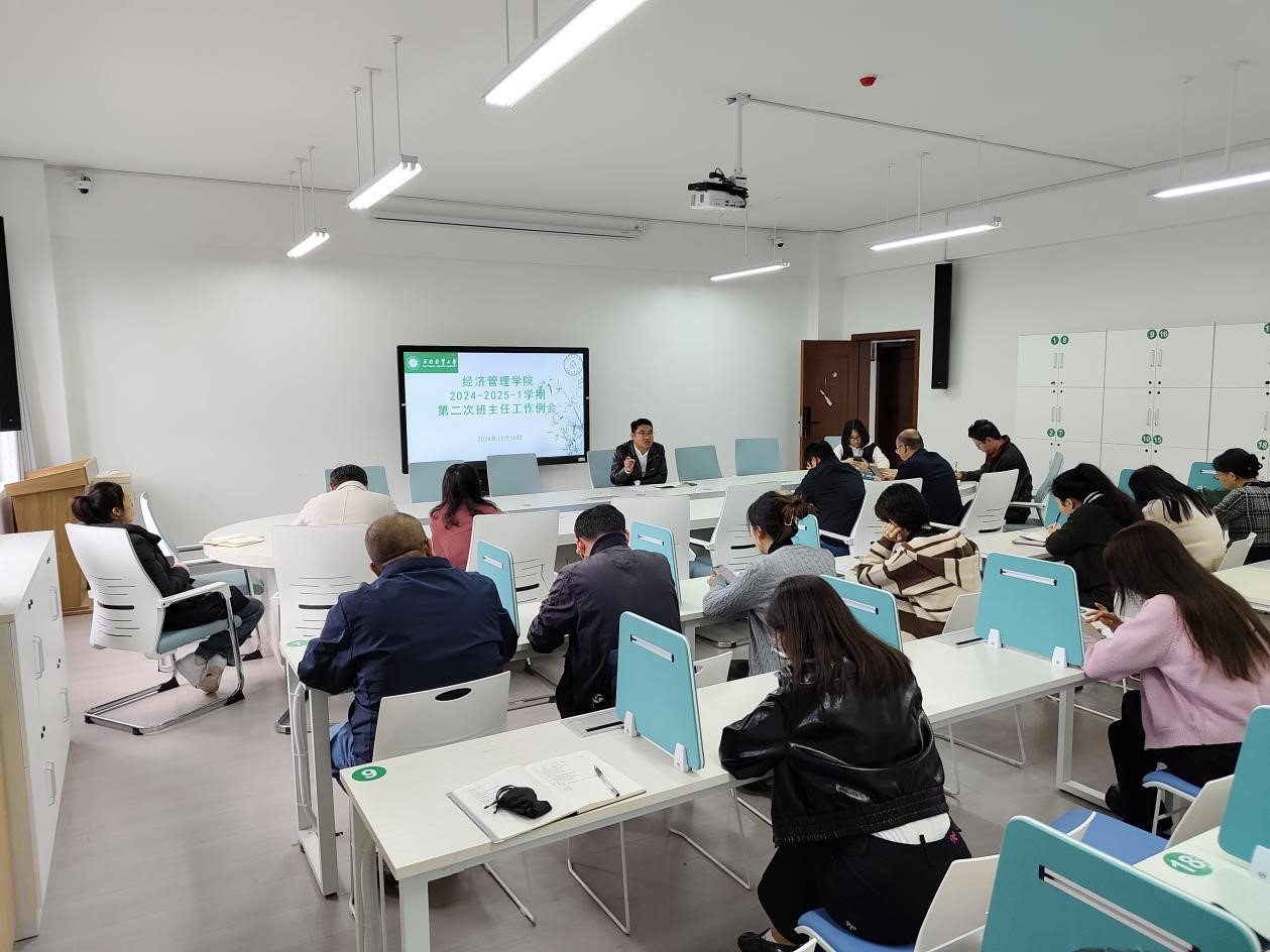10月10日中午,经济管理学院在新经管楼302会议室召开班主任会议暨安全维稳工作部署会。党委书记韩洁、学院全体专职辅导员和班主任参加,会议由学院党委副书记马泽主持。
