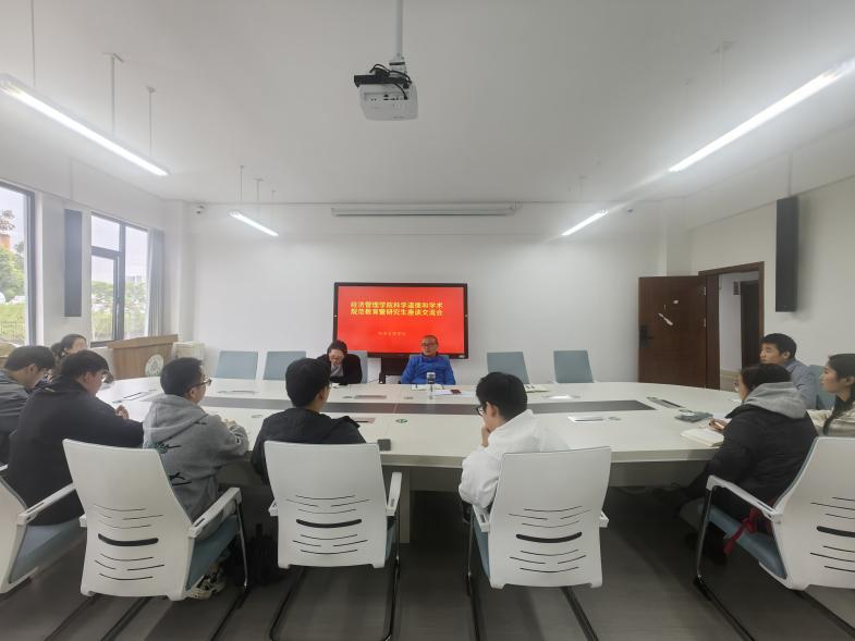10月10日下午,学院召开科学道德和学术规范教育暨研究生代表座谈会。邱守明副院长出席座谈会,研究生秘书张琴霞、刘婧及15名硕士生代表参加座谈。