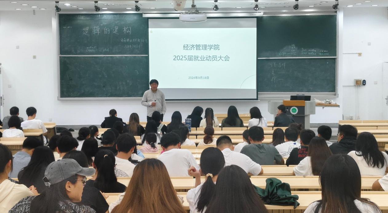 为了全面做好2025届毕业生的就业准备工作,经济管理学院于2024年9月18日至20日在智信楼103多媒体教室召开2025届毕业生就业动员大会。此次大会旨在为毕业生们加油鼓劲,助力他们顺利开启职业生涯的新篇章。