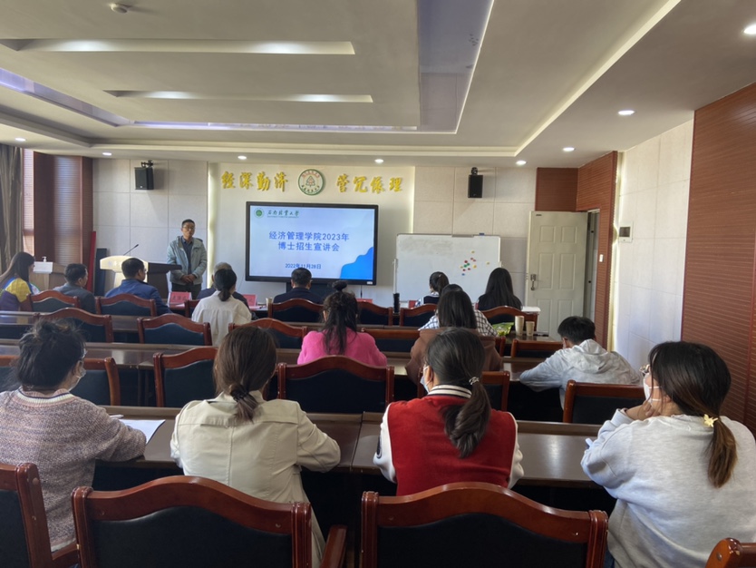 2022年11月28日,经济管理学院在经管楼521会议室召开了2023年博士研究生招生宣讲会。西南林业大学彭志远副校长,经济管理学院张连刚副院长(主持工作),经济管理学院邹再进副院长,以及其他参加本年度招生的部分博士生导师出席了本次会议,会议由经济管理学院副院长李娅主持。