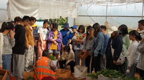 夏师傅带同学们到了棚子里,给大家讲述了今天的工作:修剪菊花枝苗,留下嫩芽。大家把嫩芽修剪好后,男生到棚子的一侧去装营养土,并浇湿,再把装好营养土的培养格放到铁网上。其他同学再进行栽苗,将菊花嫩芽根部沾取营养混合土,再插入培养格,一苗一格。看似简单的工作,实际很需要耐心。大家积极地跟夏师傅还有负责人沟通,并科普了一定植物知识,夏师傅还给同学们送了一些花苗。