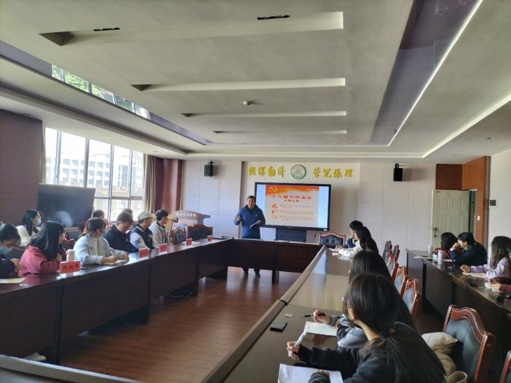 活动中首先进行的是党课学习,支部书记朱发亮同志以《深入学习贯彻党的十九届六中全会精神》为主题,从党的十九届六中全会的议程、重大意义、主要内容、重大创新等方面,带领支部全体党员认真学习了党的十九届六中全会精神。