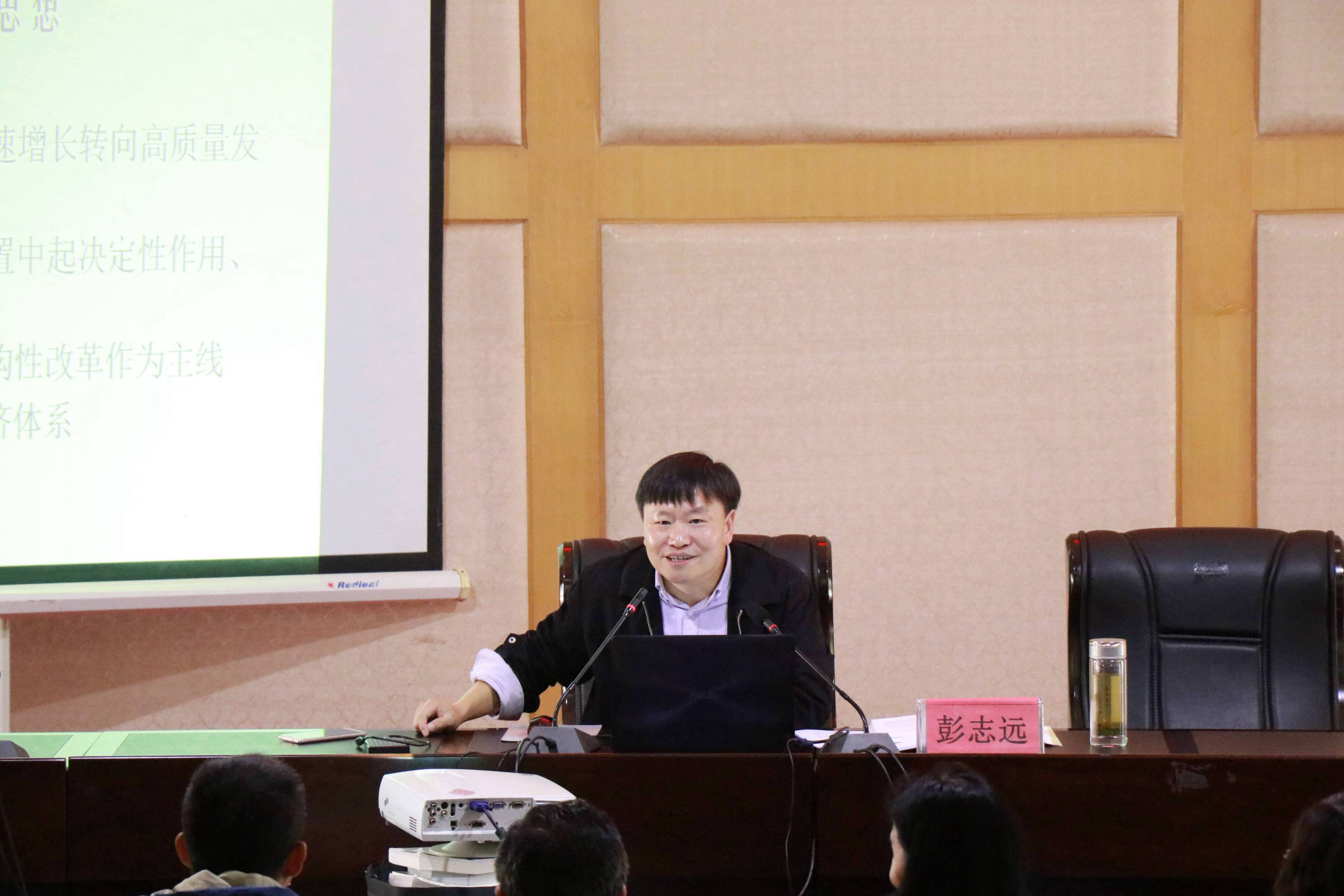 课上,彭副书记紧扣习近平新时代中国特色社会主义经济思想,结合经济管理学院、会计学院、绿色发展研究院专业学科特点、研究领域,阐述了新发展理念的深刻内涵,讲解了经济转型、供给侧结构性改革、乡村振兴等方面的内容,课堂内容详实、案例生动,讲解结合实际、深入浅出,为大家上了一堂非常精彩、生动的党课。