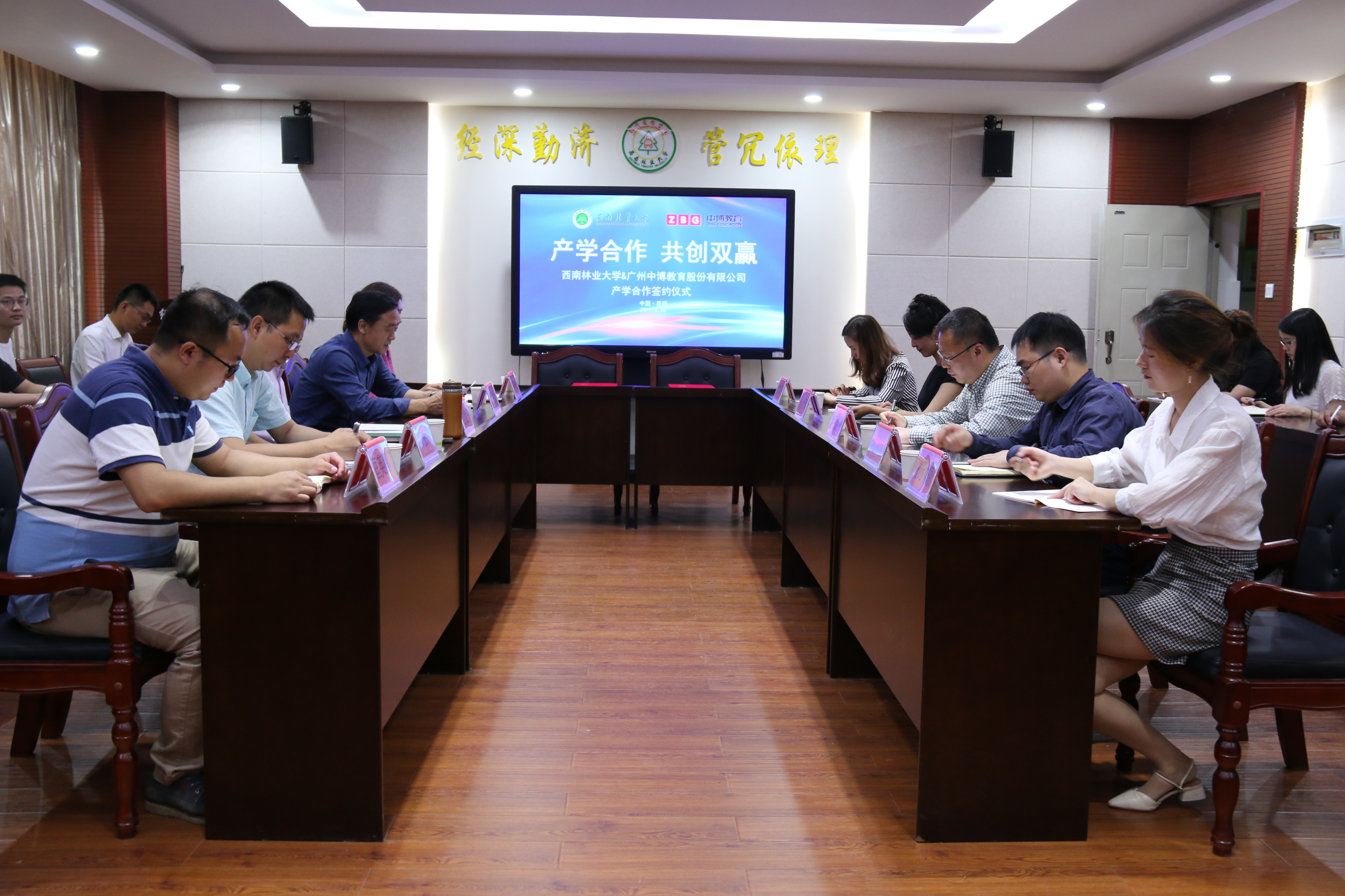 4月26日上午,西南林业大学与广州中博教育股份有限公司举行了“产学合作”项目签约仪式。西南林业大学副校长赵龙庆、经济管理学院院长罗明灿、副院长李娅、党委副书记刘俊伟、团委书记匡英鹏等师生代表和广州中博教育股份有限公司董事长(创始人)毛金明、云南区董事张莅砾、运营管理部总监谢柳清、云南分公司教务经理李娅丽、云南分公司区域经理杨嫄老师出席此次签约仪式。