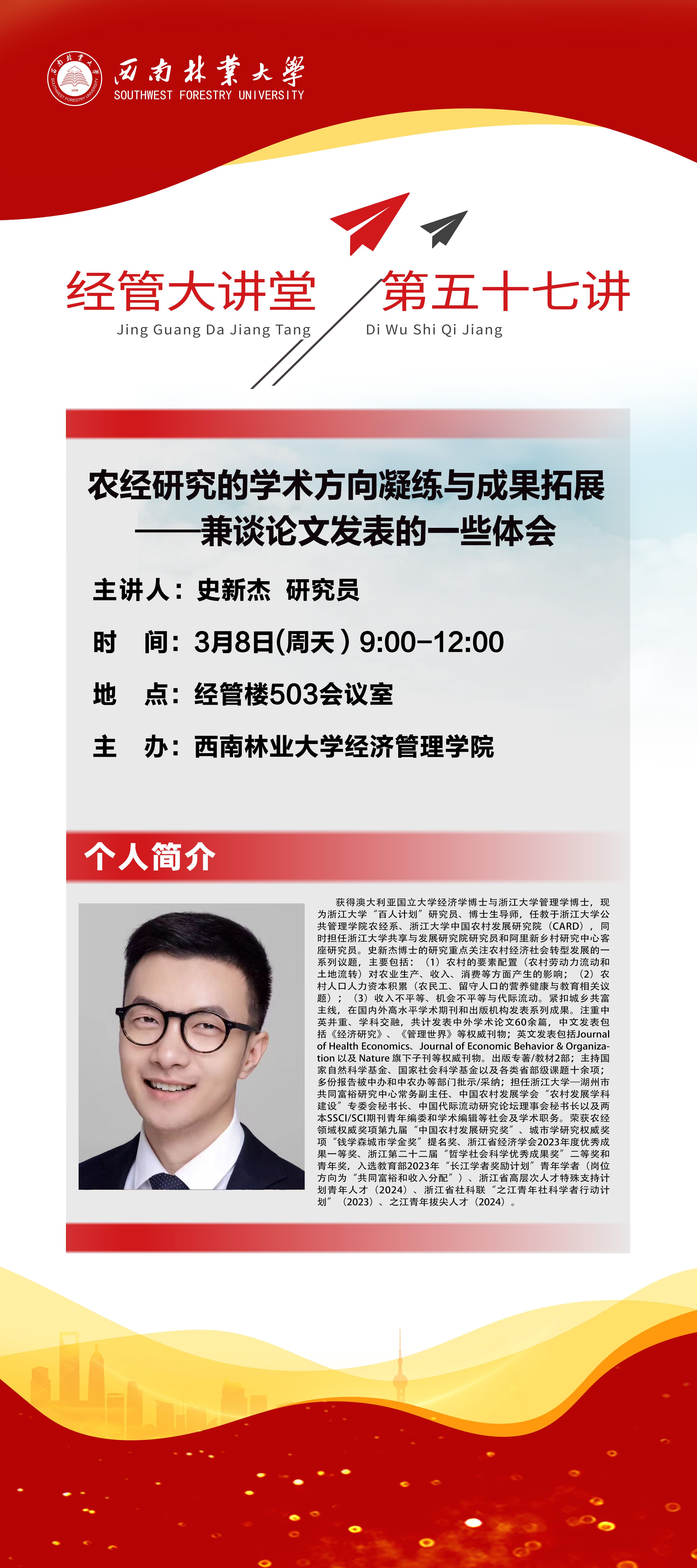 上一条:经管大讲堂第五十八讲:上海师范大学张圆刚教授讲授从期刊的角度看论文写作与发表