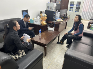 经济管理学院党委书记胡晓与学院就业联络员朱财华于2023年10月16日在学生事务中心403办公室开展访企拓岗活动,惠州纵胜电子材料有限公司周大海经理参会。