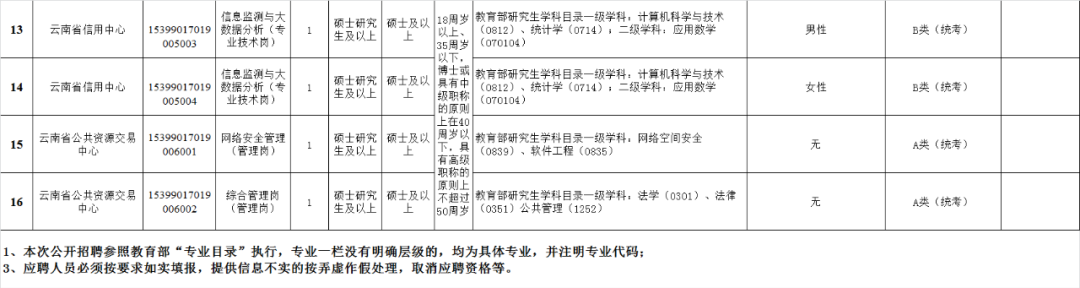 (五)云南省公共资源交易中心公开招聘工作人员2名。