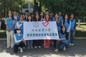 2023年4月5日清明节,经济管理学院青年志愿者协会成员在第一教学楼前花坛处集会,纪念为教育事业做出巨大贡献的曹诚一先生,薛纪如先生,任玮先生和徐永椿先生。
